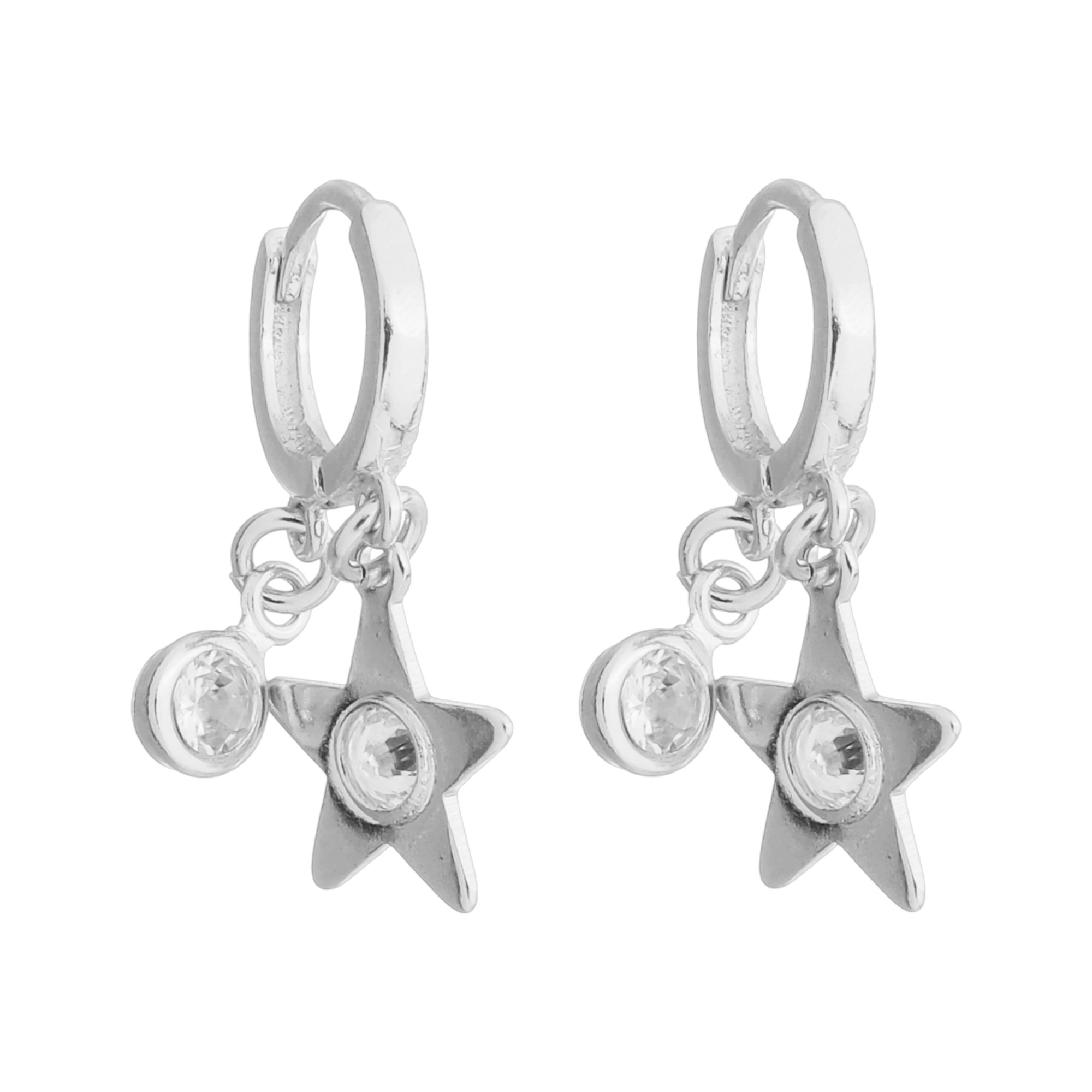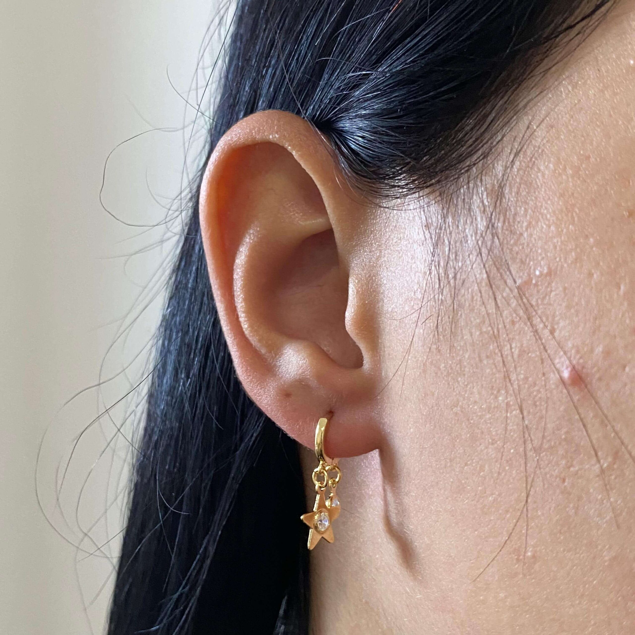 MODELO: Brinco Argolinha Estrela Pedra Cravejada Dourado banhado com 100 milésimos de prata 925.
