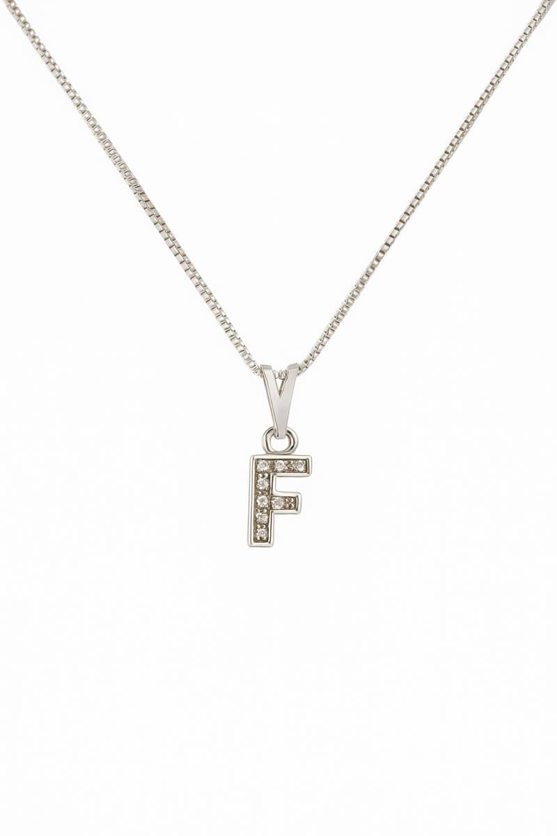 MODELO: Colar feminino de Letra F Cravejado banhado com 100 milésimos de prata 925.